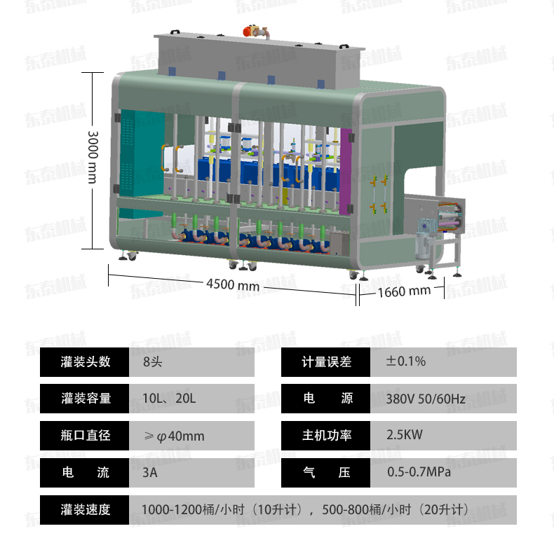 • 該系列灌裝機(jī)采用容積式計(jì)量灌裝原理,多項(xiàng)專利認(rèn)證,適用于各種規(guī)格(1-5L)的液體肥等液體灌裝。設(shè)備采用伺服驅(qū)動(dòng)活塞計(jì)量,保證了 1‰的灌裝精度,在保證灌裝精度的同時(shí),提高了 2...
